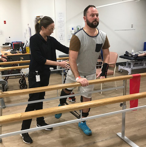 After surgery, by choice, Alex was transferred to Brisbane Waters Private Hospital for an intensive four week rehabilitation program. When Alex arrived at Brisbane Waters Private he was only just starting to walk with the aid of a forearm support frame walker. Alex was also suffering daily flashbacks about the accident. Within days, the Rehabilitation team at Brisbane Waters Private had Alex using a single arm crutch which greatly increased his independence, and subsequently improved his mental state of mind.